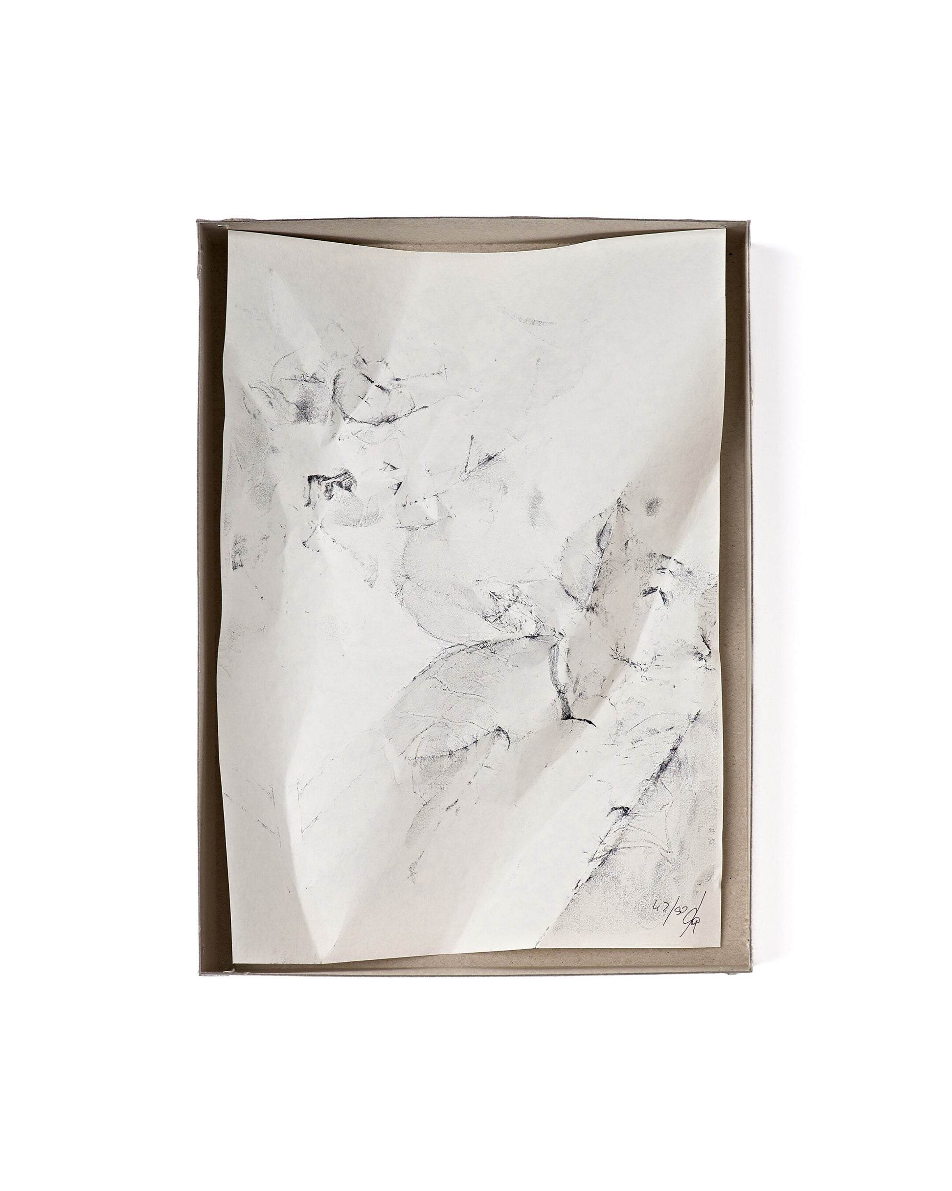 The piece was released alongside his new “Carton” collection, unveiled in Seoul in November 2025. The “Carton” series transforms crumpled cardboard boxes into sculptural objects and furniture through meticulous resin and fiberglass coating. This limited edition artwork captures the gestures and processes of that